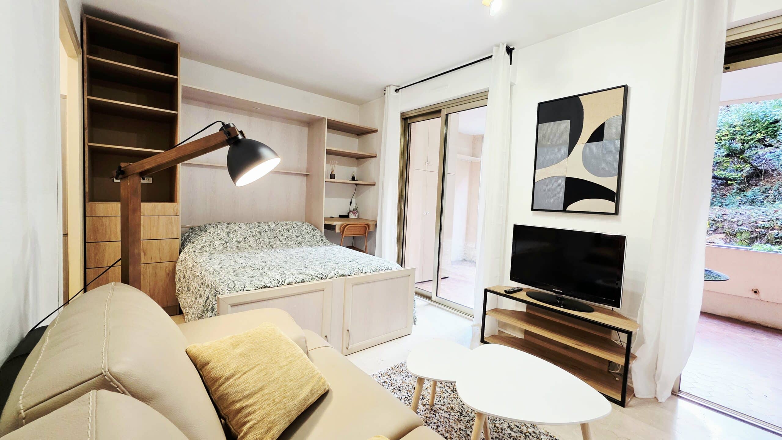 – coin nuit avec lit escamotable qui libère l’espace en journée, facile à ouvrir et à fermer
