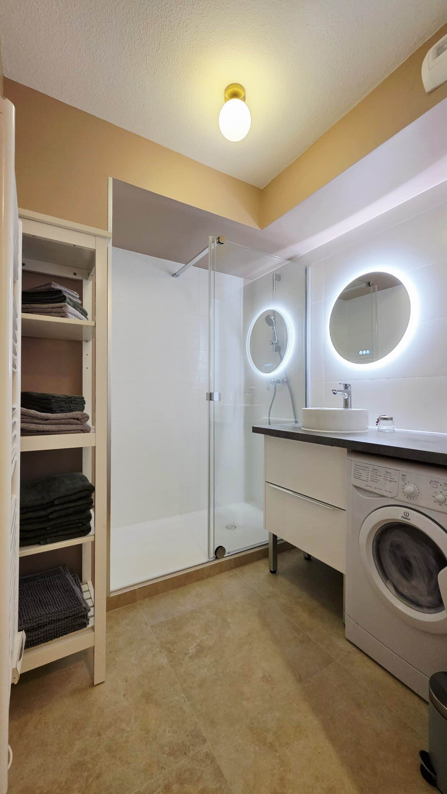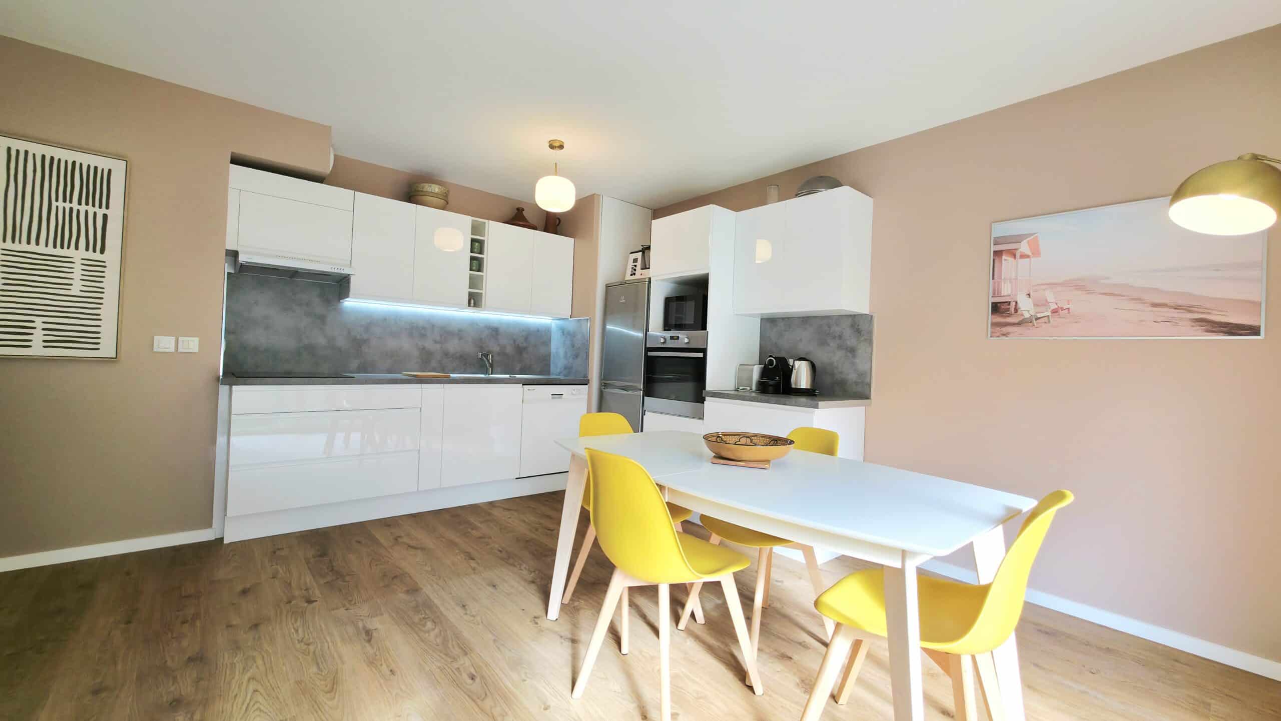 La pièce de vie est spacieuse et lumineuse, dotée d’une cuisine entièrement équipée et d’un canapé-lit haut de gamme