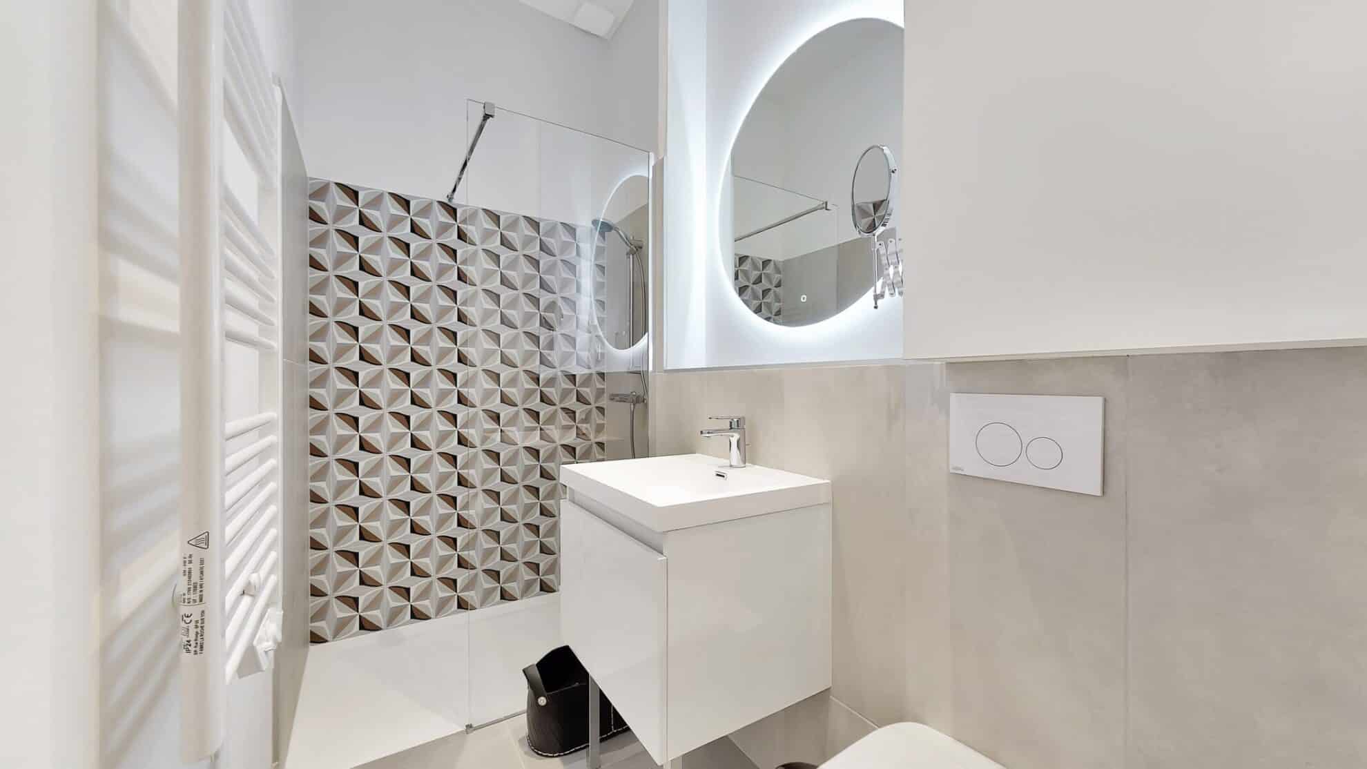 – salle d’eau avec douche italienne, vasque sur meuble et WC